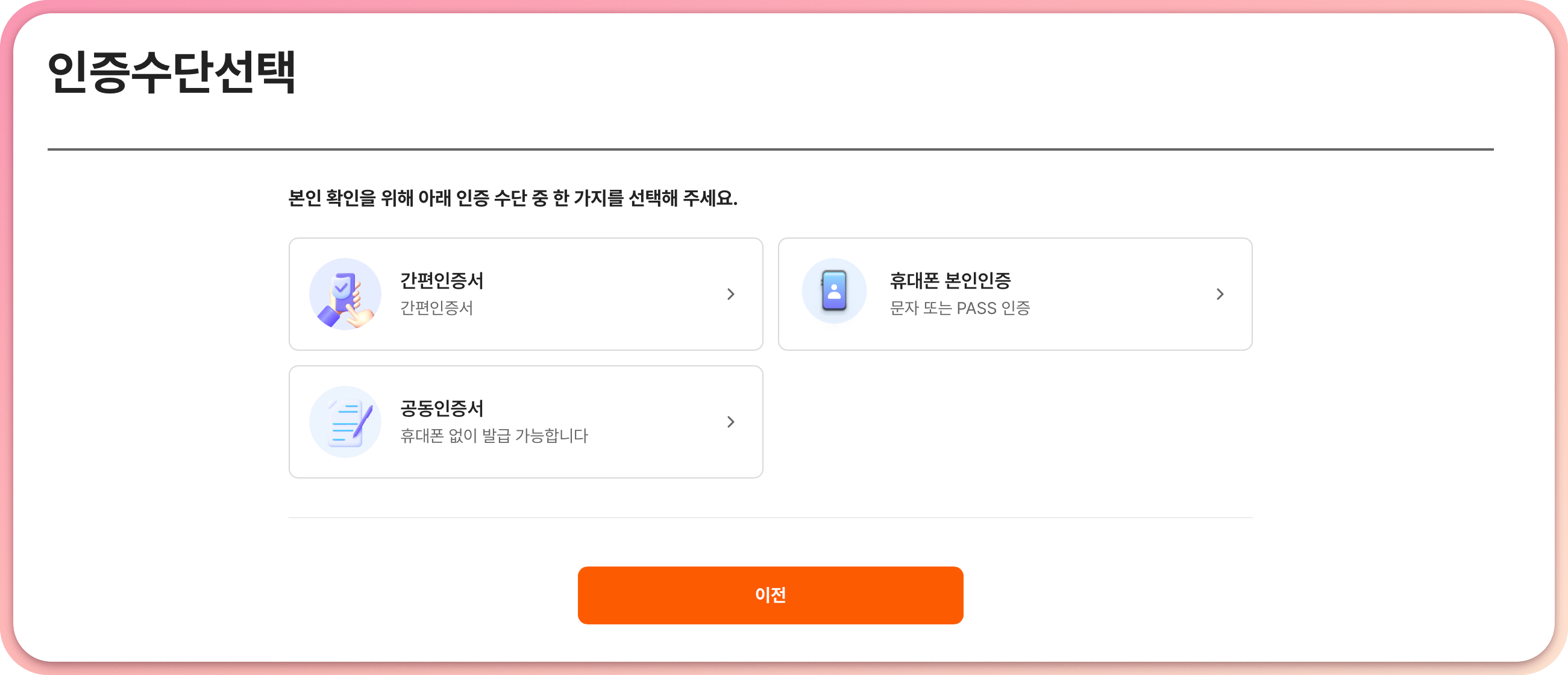본인 인증 진행. 정부 사업인데 왜 모바일신분증으로 인증하는게 없지? 암튼 pass로 진행해줬다.