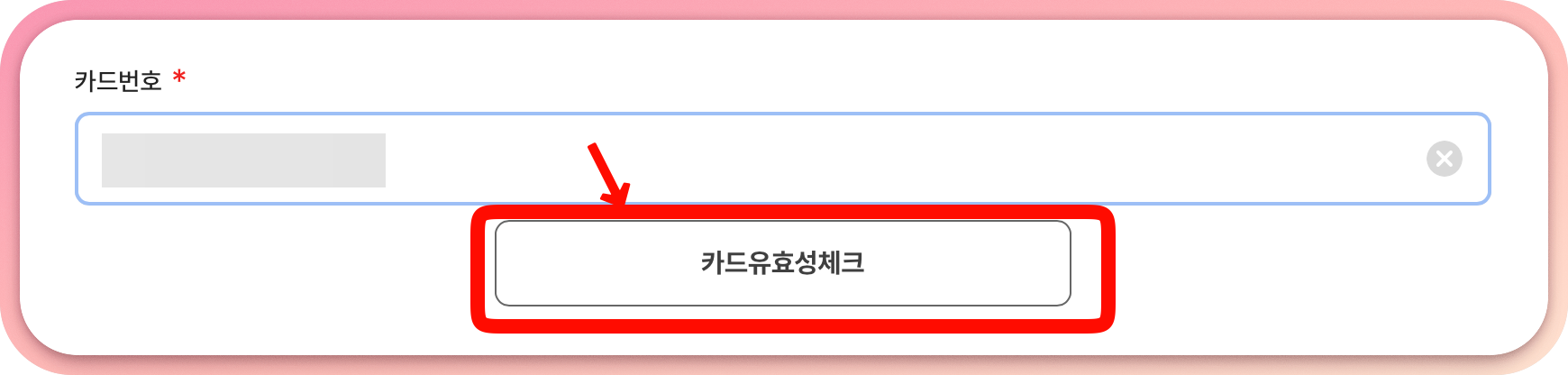 카드번호 입력하고 `카드유효성체크`해준다.