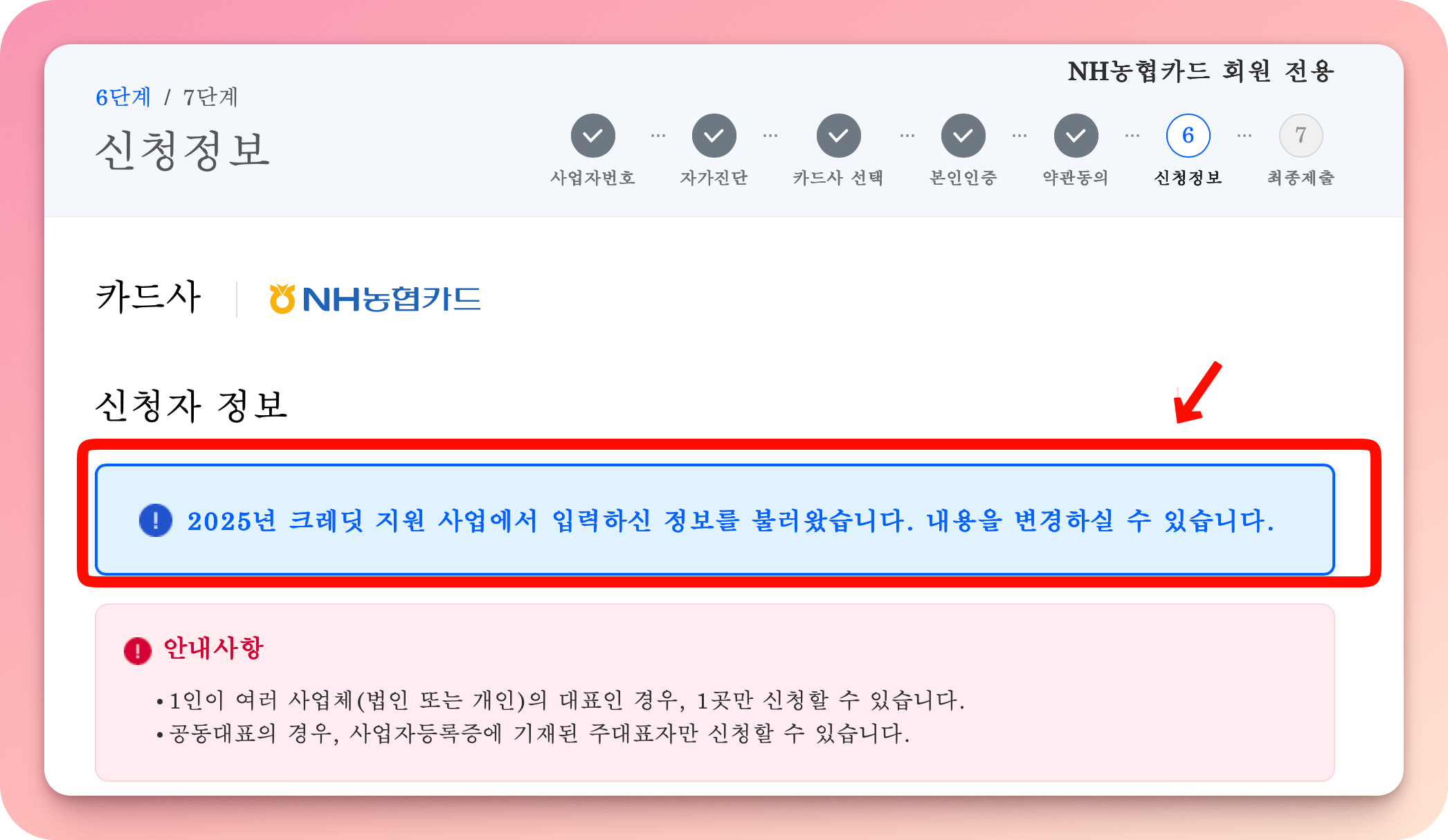 사업자등록번호 입력하고 조회한 후 신청 시작한다.